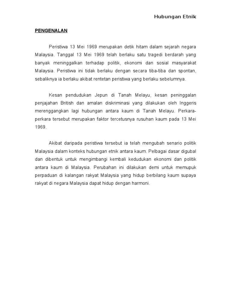 Pengajaran Peristiwa 13 Mei 1969 Konsep Asas Hubungan Etnik Pdf