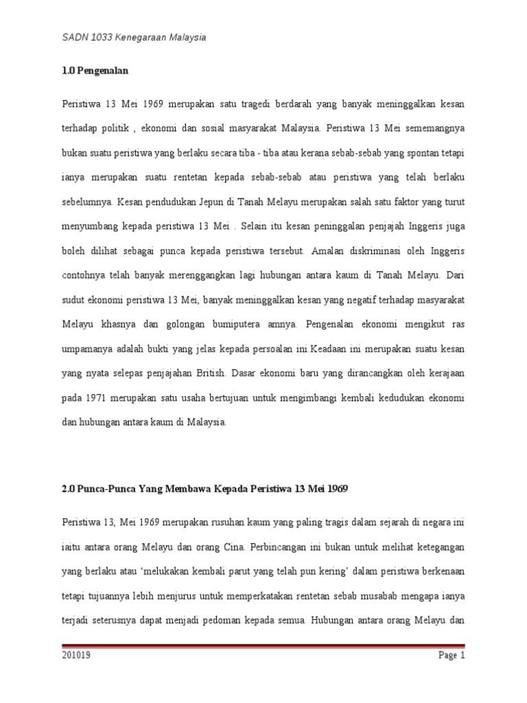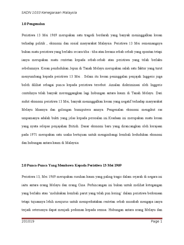 Kesan Rusuhan Kaum Pada 13 Mei 1969 Kesan Rusuhan Kaum Pada 13 Mei 1969 Peristiwa 13 Mei 1969 Studocu